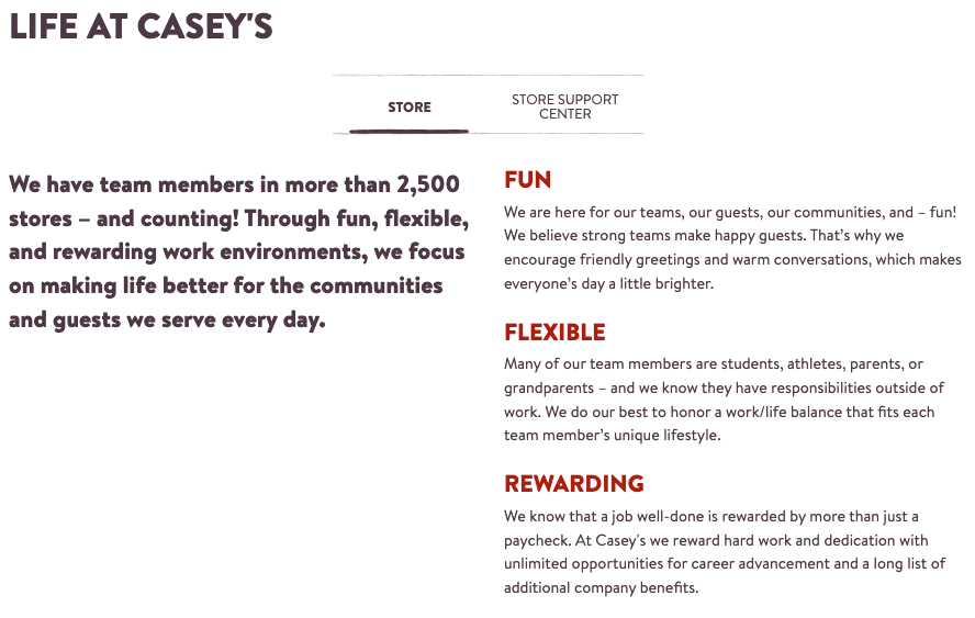 - Navigate to the Life at Caseys page.
